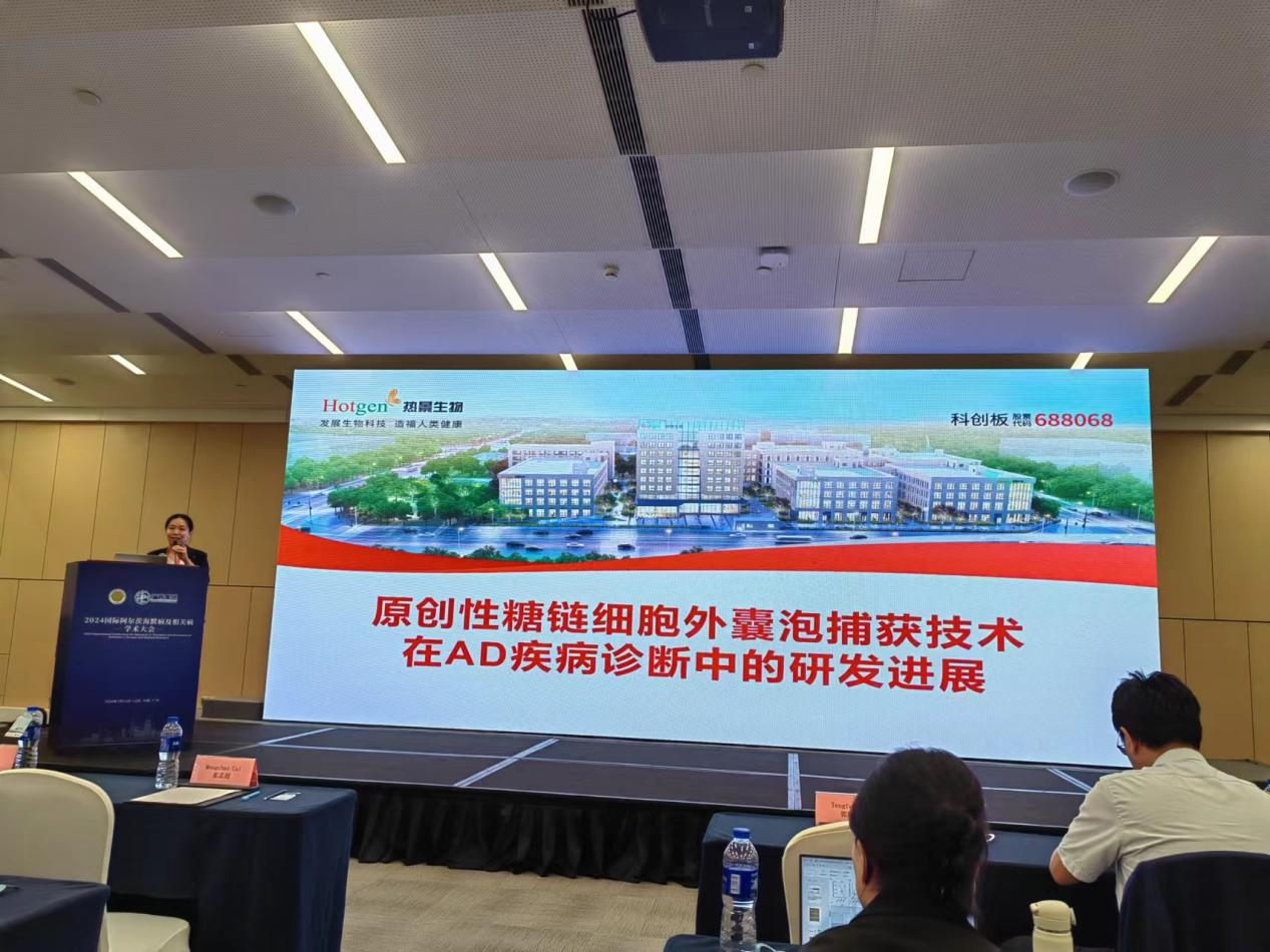 在分論壇,許立達(dá)研究員作了“原創(chuàng)性糖鏈細(xì)胞外囊泡捕獲技術(shù)在AD疾病診斷中的研發(fā)進(jìn)展”主題報(bào)告,詳細(xì)介紹了熱景生物原創(chuàng)的糖鏈外泌體捕獲技術(shù),以及在AD、肝癌、胃癌等眾多領(lǐng)域的研究進(jìn)展,獲得在場(chǎng)人員的高度認(rèn)可。