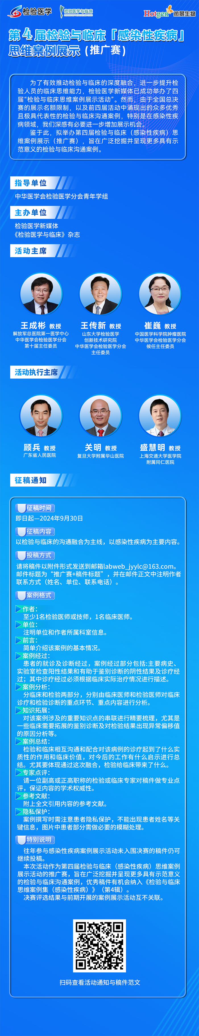 隨著檢驗(yàn)醫(yī)學(xué)專業(yè)的飛速發(fā)展,多學(xué)科協(xié)作診療(MDT)的深入推進(jìn),檢驗(yàn)醫(yī)學(xué)在臨床診療過程中的地位越來越高、學(xué)術(shù)地位日益凸顯,并被臨床醫(yī)生稱為“醫(yī)生的眼睛”和“醫(yī)學(xué)界的偵探”。同時(shí),檢驗(yàn)醫(yī)學(xué)是聯(lián)系基礎(chǔ)醫(yī)學(xué)與臨床醫(yī)學(xué)的紐帶,是多學(xué)科的組合體。現(xiàn)代檢驗(yàn)醫(yī)學(xué)倡導(dǎo)以患者為中心,以疾病診斷和治療為目的,加強(qiáng)檢驗(yàn)醫(yī)學(xué)人員學(xué)習(xí)臨床知識(shí),開展檢驗(yàn)與臨床對(duì)話顯得尤為重要。