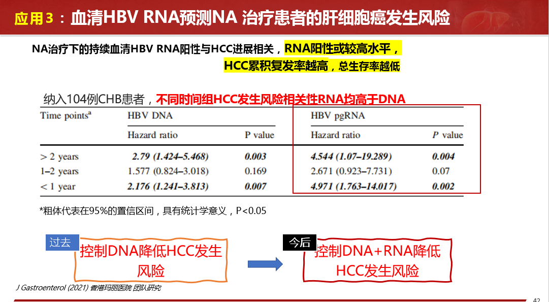 ★今后,從過去單一的控制HBV DNA到控制HBV DNA+ HBV RNA降低HCC發(fā)生風險將成為一種應用趨勢。