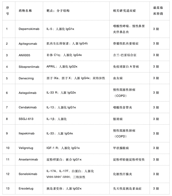 本篇我們將介紹18款有望在2025年提交上市申請(qǐng)的單抗藥物,其種5款則專門(mén)針對(duì)癌癥適應(yīng)癥,13款針對(duì)非癌癥適應(yīng)癥。