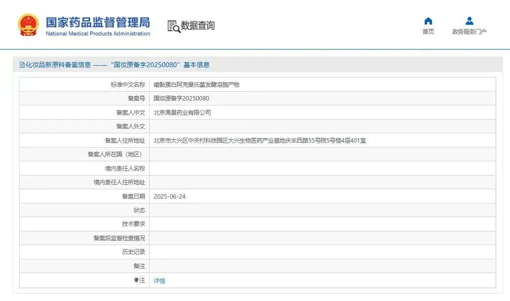 中國(guó)北京,2025年6月24日——熱景生物(股票代碼:688068)孵化的北京禹景藥業(yè)有限公司(以下簡(jiǎn)稱(chēng)“禹景藥業(yè)”)自主研發(fā)的Akkermansia muciniphila YG2602(AKK YG2602)成功通過(guò)國(guó)家藥品監(jiān)督管理局化妝品新原料備案(備案號(hào):國(guó)妝原備字20250080),成為全球首個(gè)獲批的AKK菌化妝品新原料。