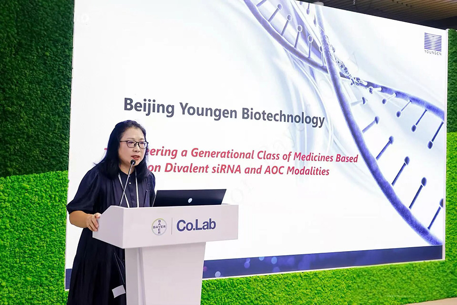 2025年9月8日,北京堯景基因生物技術(shù)有限公司(下稱“堯景基因”)應(yīng)邀參加拜耳Co.Lab全球生命科學(xué)共創(chuàng)平臺在華開幕一周年“1起·為創(chuàng)想喝彩”主題活動,共同探討中國創(chuàng)新藥的未來發(fā)展?jié)摿?,推動更多突破性?chuàng)新成為應(yīng)對全球健康挑戰(zhàn)的中國解決方案。堯景基因首席科學(xué)顧問鐘輝教授分享全球小核酸行業(yè)的發(fā)展與競爭格局,展示了公司自主研發(fā)的心臟靶向遞送技術(shù)平臺及管線研發(fā)成果。