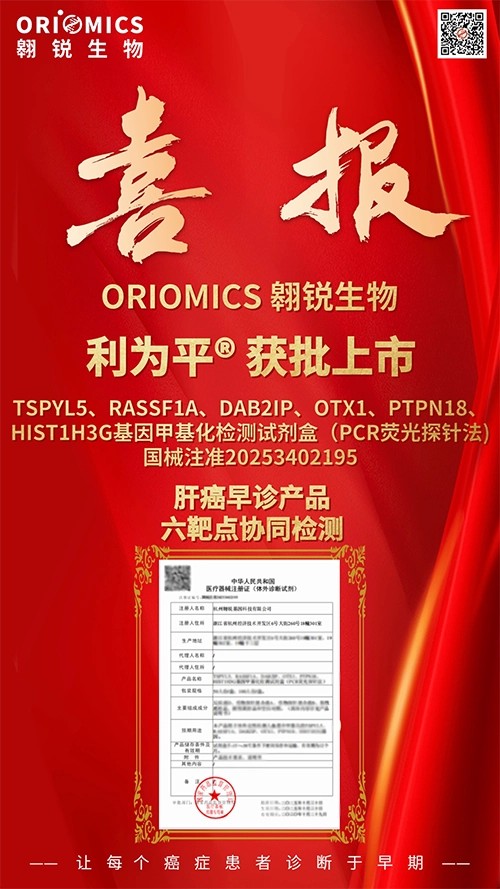 近日,熱景生物重要參股公司翱銳生物自主研發(fā)的利為平?——TSPYL5、RASSF1A、DAB2IP、OTX1、PTPN18、HIST1H3G基因肝癌甲基化檢測試劑盒(PCR熒光探針法)獲得國家藥品監(jiān)督管理局頒發(fā)的Ⅲ類醫(yī)療器械注冊證(注冊證號(hào):國械注準(zhǔn)20253402195)。該產(chǎn)品用于體外定性檢測人血漿中相關(guān)基因甲基化,適用于臨床上對(duì)疑似原發(fā)性肝癌的輔助診斷。